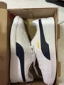 Tênis Puma Branco Navy para quem busca estilo urbano sem abrir mão do conforto. Cabedal branco de alta durabilidade, com detalhe marinho na lateral e logo amarelo, cadarços resistentes e forro macio. Sola de borracha com boa tração, ideal para uso diário.